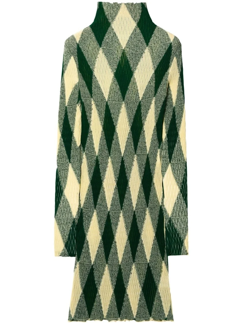 argyle ribbed-knit dress Highlights - Ivy green/light yellow - Cotton-silk blend - Ribbed knit - Argyle check pattern - Roll neck - Long sleeves - Knee-length - Lettuce hem Made in Italy Composition Cotton 60%, Silk 40%