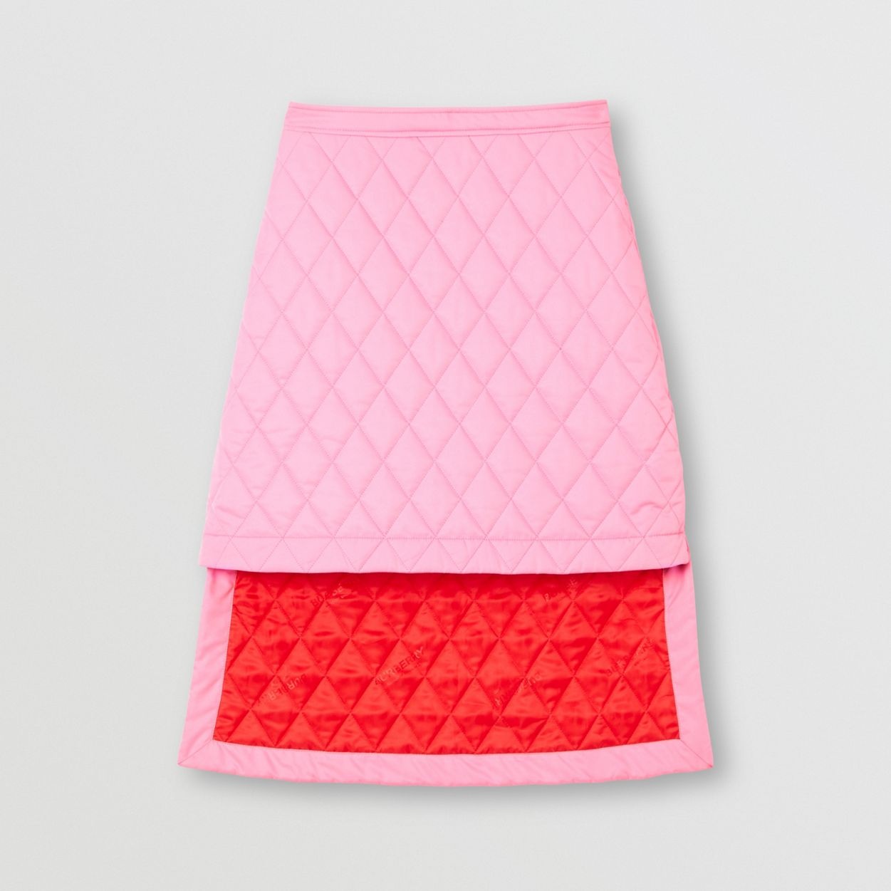 A diamond-quilted skirt highlighted with an exaggerated stepped hem and contrast-coloured lining. Skirt length: 57cm/22.4in. This is based on a size UK 8 as proportions change slightly according to size. Model’s height: 180cm/5ft 11in. Model wears size UK 6. Outer: 100% polyester Lining: 100% cupro Filling: 100% polyester Side concealed hook-and-eye and zip closure Specialist dry clean Imported Item: 80311181