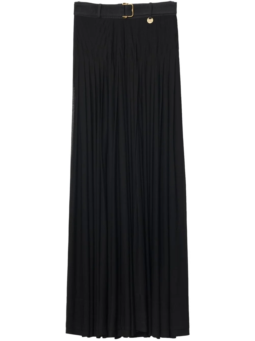 pleated maxi skirt Highlights - Black - Slide-buckle fastening - Belted waist - Fully pleated - Logo charm Made in Italy Composition Viscose 100%, Cotton 82%, Polyamide 18%