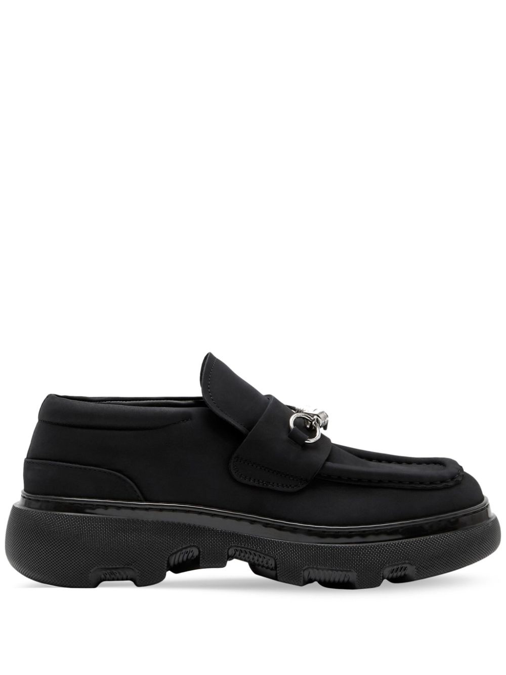 barbed-wire detail suede loafers Highlights - Black - Suede - Square toe - Silver-tone hardware - Piped-trim detailing - Branded insole - Slip-on style - Chunky rubber sole Composition Outer: Suede 95%, Brass 5% Lining: Calf Leather 85%, Cotton 15% Sole: Rubber 100%