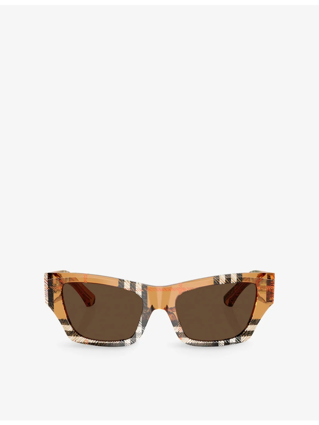 PRODUCT DETAILS - Burberry acetate sunglasses - Style number: BE4441U - Frame 100% acetate; Lens: 100% polyamide - 100% UV-protected lens, branding at the side, silver-tone hardware, checked pattern - Frame shape: cat eye - Lens width 5.2cm, bridge size 1.9cm, temple length 14cm - Wipe with a clean, dry cloth - Comes with hard case and cloth Ref: R04374157