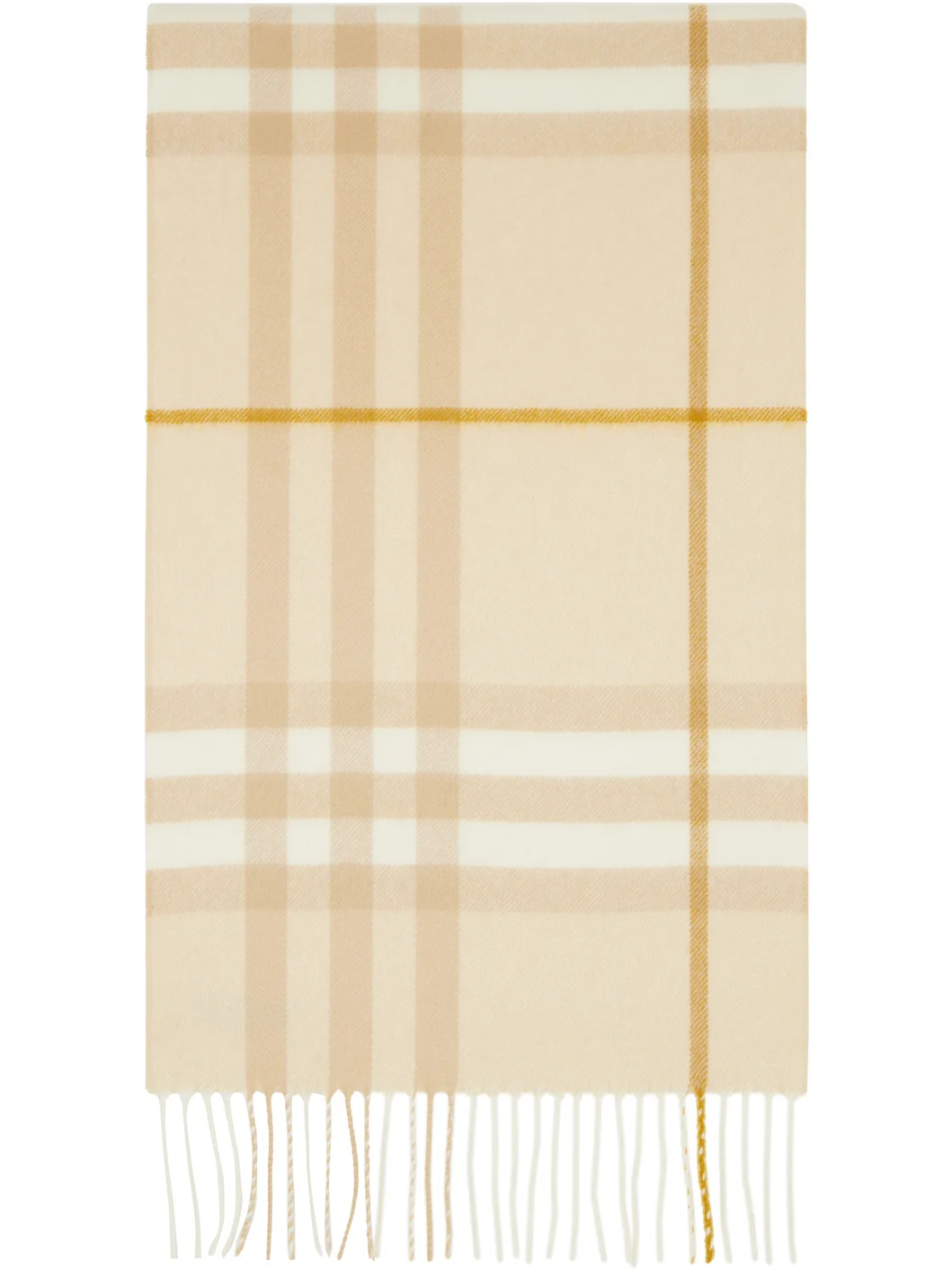 Rectangular cashmere flannel scarf. · Check pattern throughout · Fringed detailing at ends · L66" x W11.75" Supplier color: White denim 100% cashmere. Made in United Kingdom 261376F028014