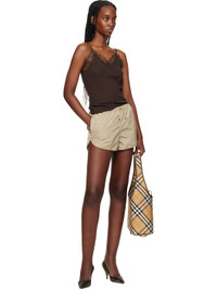 Lightweight plain-woven nylon- and cotton-blend shorts. · Drawstring at elasticized waistband · Three-pocket styling · Logo hardware at front · Vented outseams Supplier color: Cracker Body: 60% polyamide, 40% cotton. Lining: 100% polyamide. Made in Romania 251376F088005