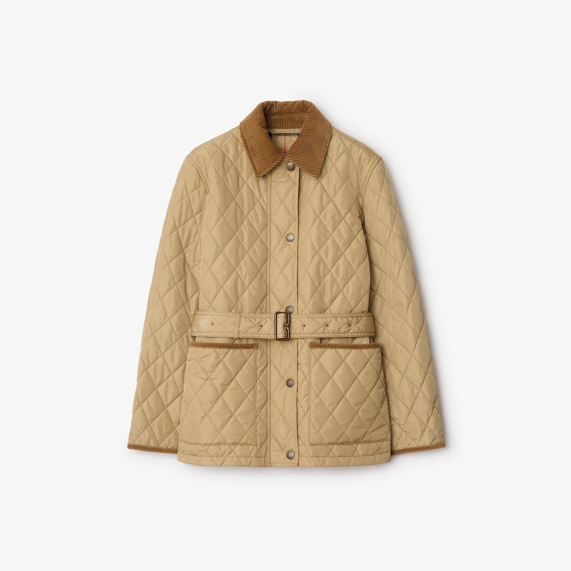 Product Details A quilted jacket made from lightweight nylon with a contrasting lining in Burberry Check cotton twill. Cut to a regular fit, the style features tonal corduroy trims and a belt to cinch the waist. - Zip and press-stud closure - B buckle belt - Side patch pockets - Burberry Check lining - Equestrian Knight Design tag at side - Comes with a garment bag - Regular fit. Fits true to size, take your normal size. - Item 81103761 Size & Fit - Length: 70cm/27.6in (size UK S) - Model’s height: 175cm/5ft 9in. Model wears size UK S Fabric & Care - Outer: 100% polyamide - Trim: 100% cotton - Lining: 100% cotton - Pockets: 100% cotton - Filling: 100% polyester fibres - Specialist dry clean - Imported
