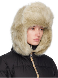 Beige Shearling Trapper Hat