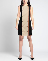 plain weave, no appliques, two-tone, round collar, sleeveless, fully lined, button closing, no pockets, stretch, pencil style COMPOSITION 98% Wool, 2% Elastane MEASUREMENTS Length (from the back to the bottom of the dress): 93.0 Product code: 15320248HE