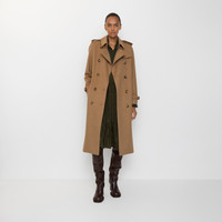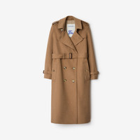Product Details Our signature Kensington trench coat tailored from technical cashmere – designed to help you stay comfortable in the elements. The fabric is brushed for a soft finish and bonded to a thin membrane with a tonal chevron lining. Burberry Check wool cotton lines the undercollar. The style is cut to a regular fit with set-in sleeves. - Double-breasted button closure - Hook-and-eye collar closure - Epaulettes - Belt - Side button welt pockets - Belted cuffs - Back button vent - Burberry Check undercollar - Comes with a garment bag - Regular fit. Fits true to size, take your normal size. - Item 81158291 Size & Fit - Length: 115cm/45.3in (size UK 8) Fabric & Care - Outer: 100% cashmere - Undercollar: 81% wool, 19% cotton - Lining: 100% cupro - Buckles: 100% calf leather - Dry clean - Imported