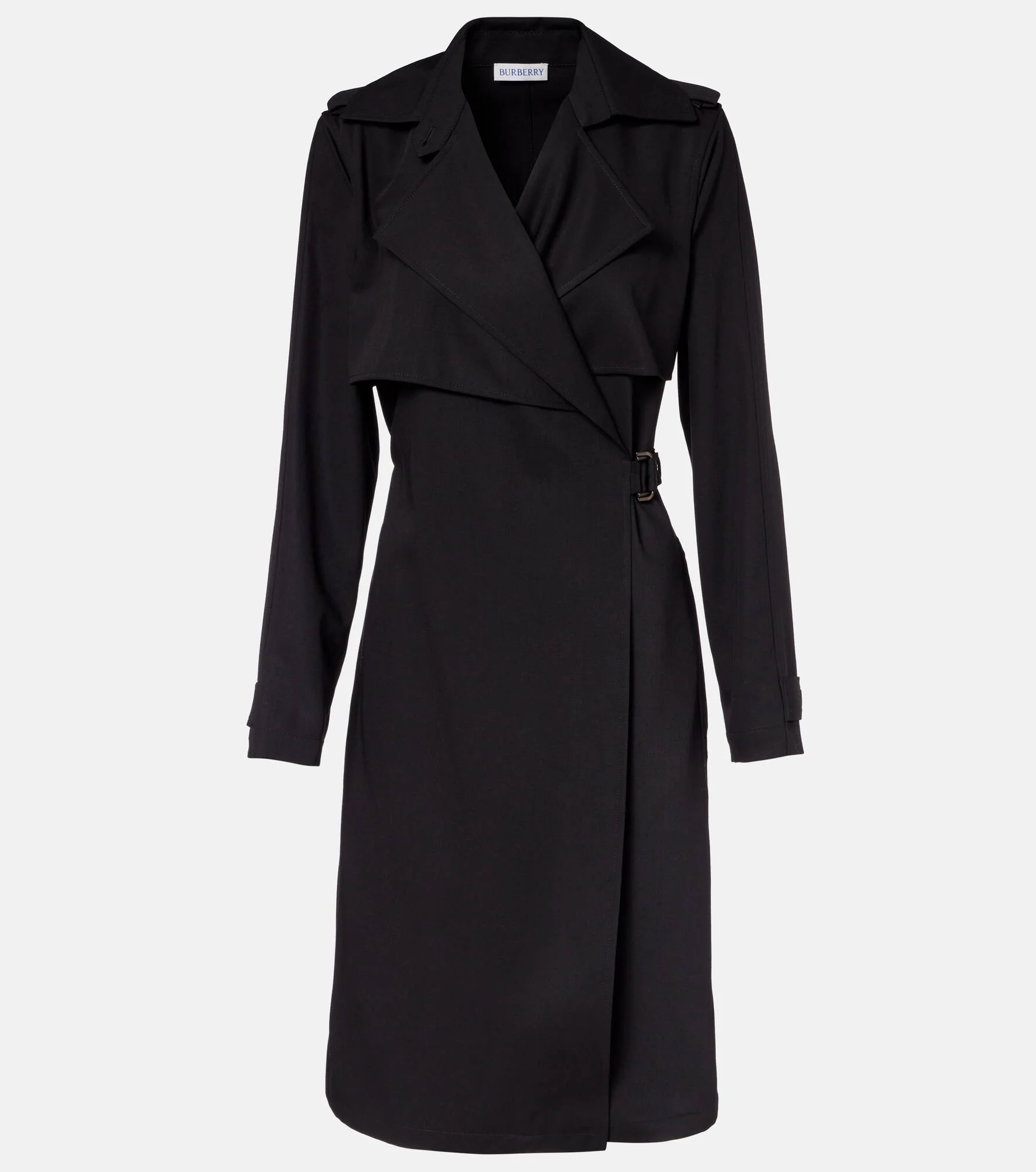Crafted in Italy from pure wool, this Burberry midi dress is tailored to a wrap silhouette with a coat style. The design features a notched lapel and a belted waist. Product Details - Material: 100% wool - Care instructions: dry clean - Made in Italy - Color: black - Designer color name: Black - Item color: black - Details: 100% water-buffalo horn - Notched lapel - Epaulettes - Closure: wrap-front, belted waist - Cuff: buttoned - Pockets: side slit pockets - Item number: P01143345 Size & Fit - True to size - Loose fit, comes with belt - Non-stretchy fabric - The model seen in the picture is 178cm-5'10" and wearing a size UK 6