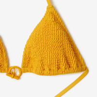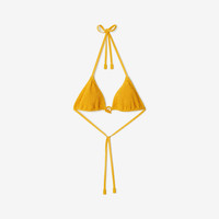 PRODUCT DETAILS A halterneck bikini top in stretch nylon with a crinkled texture. The style features a centre T-bar fastening and comes with a matching drawstring bag. - Model’s height: 177cm/5ft 10in. Model wears size UK S 96% polyamide, 4% elastane Trims: 69% polyamide, 31% elastodiene; 59% polyamide, 41% elastane Bag: 96% polyamide, 4% elastane Hand wash Made in Portugal Item 80901131