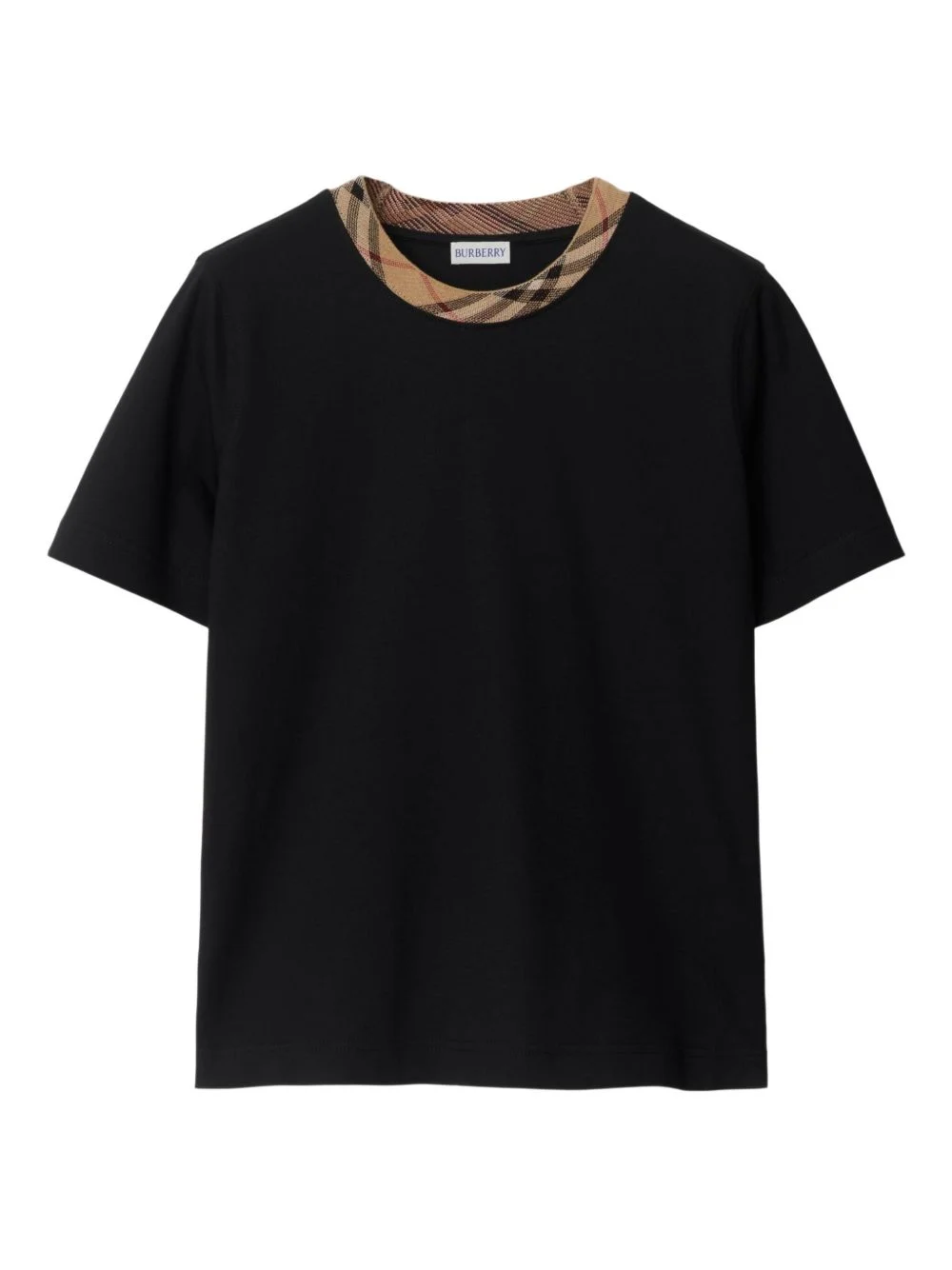 checked-trim T-shirt Highlights - Black - Round neck - Short sleeves - Straight hem Imported Composition Cotton 100%