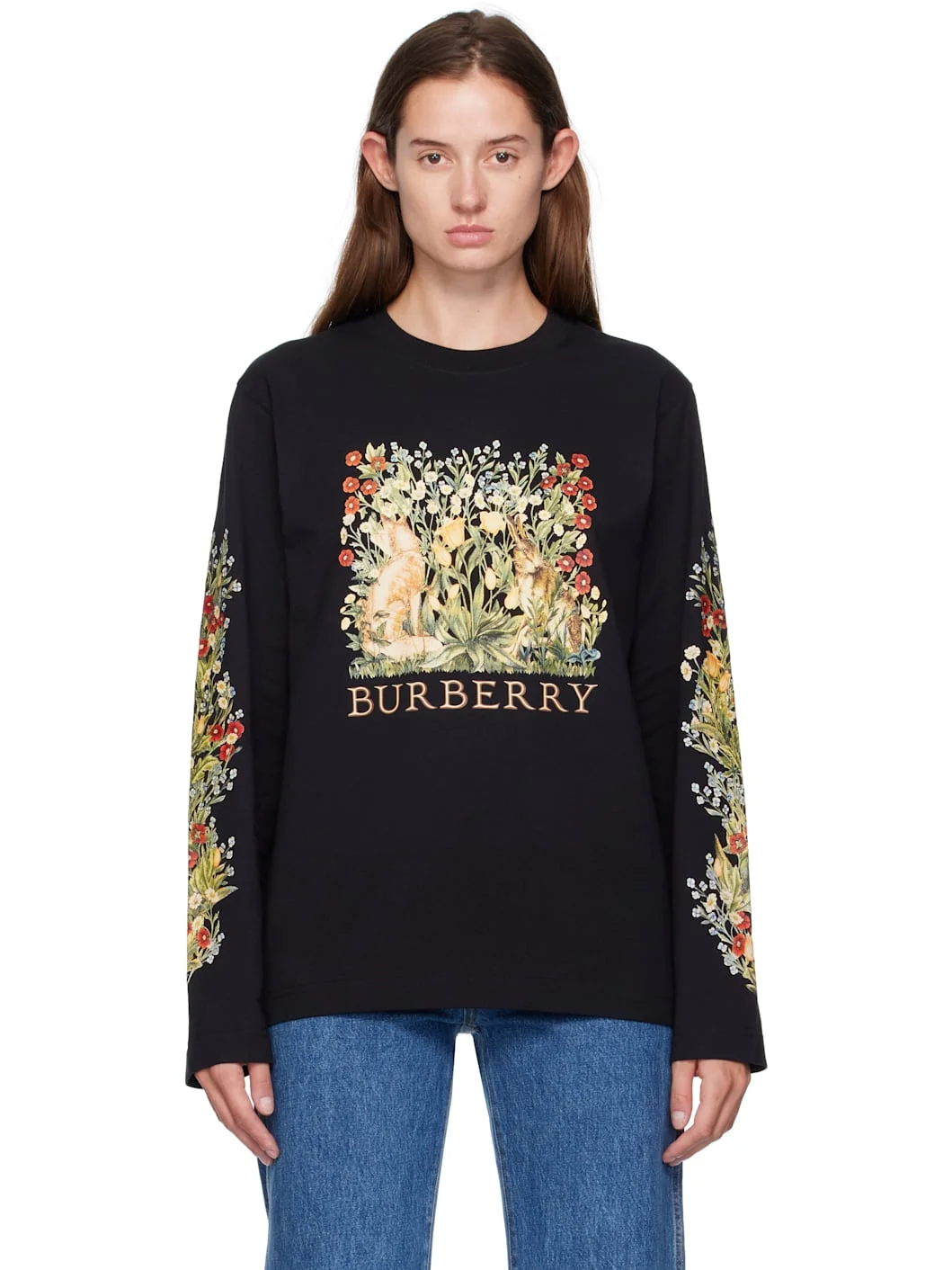 Cotton jersey T-shirt. · Rib-knit crewneck · Logo graphic printed at front · Floral graphics printed at sleeves Supplier color: Black 100% cotton. Made in Portugal 252376F098001