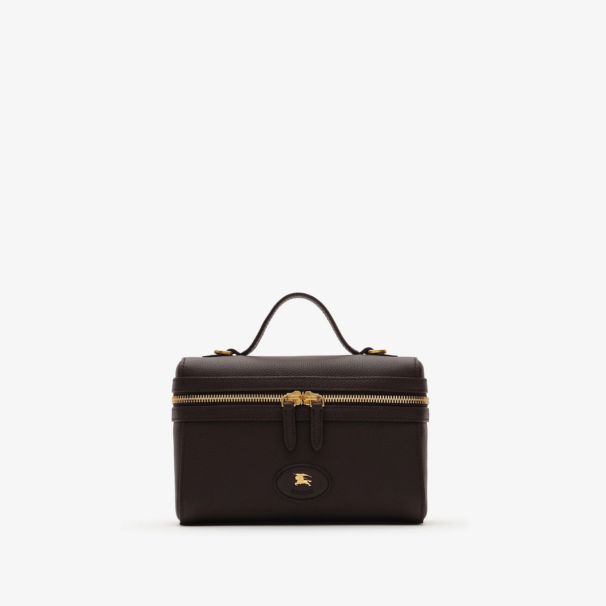 Product Details A vanity case crafted in Italy from grainy calf leather, lined in a cotton blend woven with the Burberry Check. Part of the Bloomsbury collection, the compact style is defined by a leather and metal Knight stamp – an archival motif first seen on Burberry bags in the 1980s. Carry by the top handle, across the body or on the shoulder using the detachable strap. - Leather top handle - Detachable, adjustable leather strap - Two-way zip closure - Two card slots - Hand-painted edges - Brushed metal hardware - Burberry Check lining - Comes with a dust bag - Item 81234001 Size & Fit - 19.5 x 8 x 15cm/7.7 x 3.2 x 5.9in. Min. strap drop: 48cm/18.9in. Max. strap drop: 60cm/23.6in Fabric & Care - Outer: 100% calf leather - Lining: 69% cotton, 21% viscose, 10% linen - Made in Italy