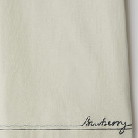 Product Details A cotton jersey T-shirt subtly embroidered with a logo at the hem. The crew-neck style is cut to a regular fit. - Rib-knit neckline - Embroidered Burberry lettering at hem - Regular fit. Fits true to size, take your normal size. - Machine wash - Item 80942831 Size & Fit - Length: 54cm/21.3in (size UK S) - Model’s height: 180cm/5ft 11in. Model wears size UK S Fabric & Care - 100% cotton - Trim: 97% cotton, 3% elastane - Made in Portugal
