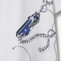 PRODUCT DETAILS A crew-neck T-shirt in cotton jersey. The style is cut to a regular fit and printed with hand-painted artwork featuring our jewellery and bag hardware. - Length: 54cm/21.3in (size UK S) - Model’s height: 180cm/5ft 11in. Model wears size UK S Regular fit. Fits true to size, take your normal size. 100% cotton Trim: 97% cotton, 3% elastane Machine wash Made in Portugal Item 80882151