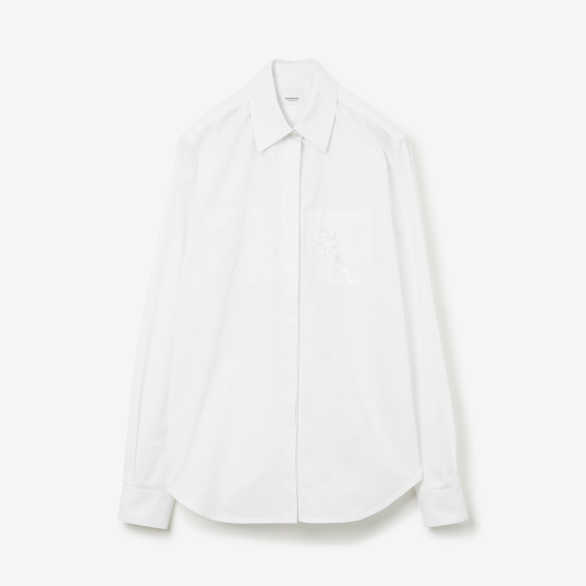 PRODUCT DETAILS Highlighted with our Equestrian Knight Design in broderie anglaise. - Shirt length: 77cm/30.3in. This is based on a size UK 6. Oversized fit. This style is cut to exaggerated proportions. 100% cotton Buttons: mother-of-pearl Single-button cuffs Point collar Chest patch pockets Curved hem Machine wash Imported Item 80713631