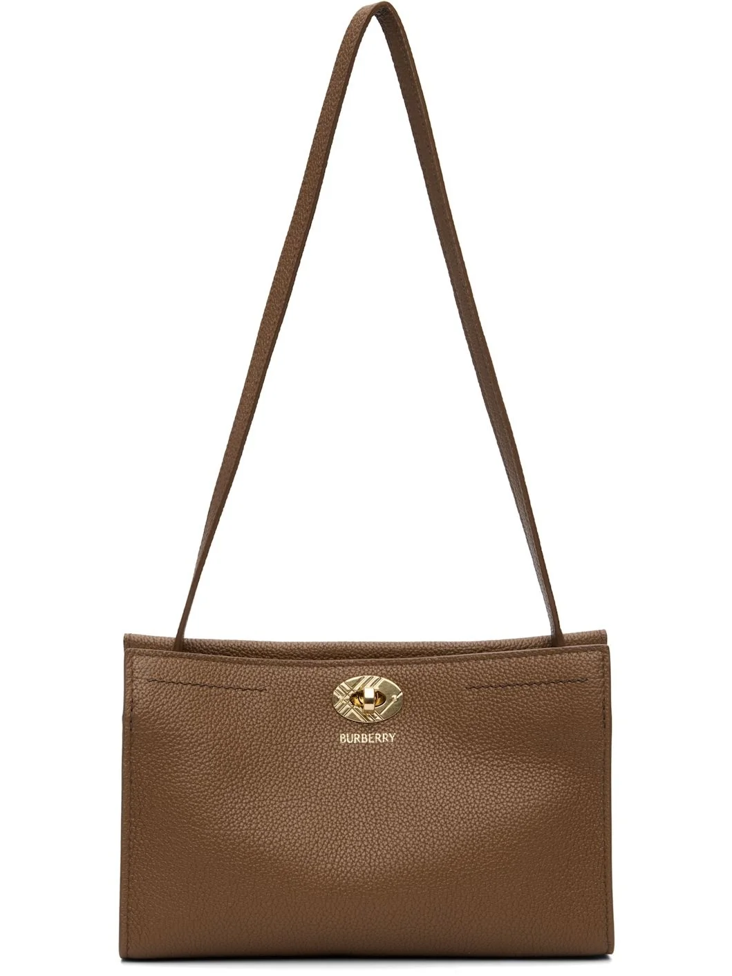 Grained calfskin shoulder bag. · Grained leather shoulder strap · Logo stamp at face · Turn-lock fastening · Check-patterned textile lining · Gold-tone hardware · H5.5" x W8.5" x D3.5" Supplier color: Hazel Calfskin. Made in Italy 252376F048013
