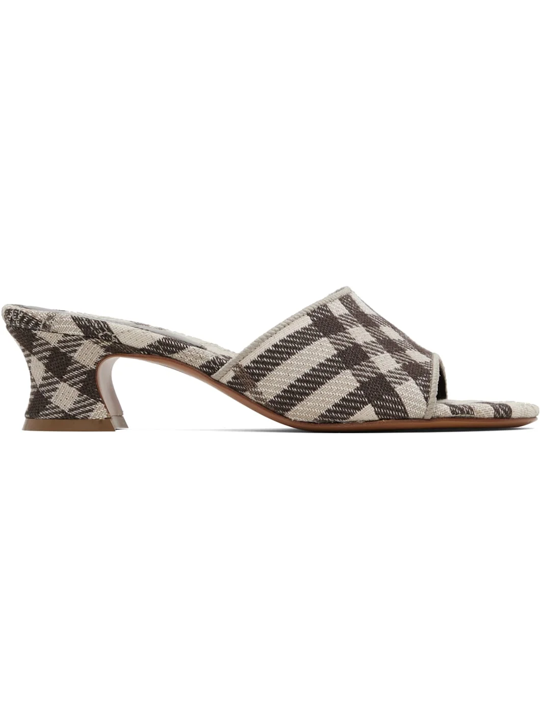 Brown & White Check Sloane Mule Heeled Sandals