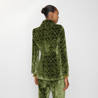 Product Details A blazer made in Italy from jacquard-woven velvet damask, debuted on the Burberry Winter 2025 runway. The intricate raised fabric evokes the rococo-style flocked wallpapers found in British stately homes. Tailored to a slim fit and lined with satin. - Single-breasted closure - Peak lapels - Side welt pockets - Fully lined, padded shoulder - Slim fit: this style is cut to a fitted silhouette. Fits true to size, take your normal size. - Item 81158891 Size & Fit - Length: 73cm/28.7in (size UK 8) - Model’s height: 180cm/5ft 11in. Model wears size UK 8 Fabric & Care - Outer: 55% viscose, 31% polyester, 14% cotton - Lining: 100% viscose - Pocket lining: 100% cotton - Buttons: buffalo horn - Specialist dry clean - Made in Italy