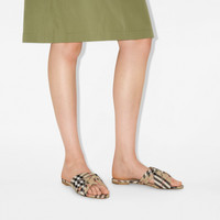Product Details Slidesmade in Italy from a linen blend, with crossover straps echoing the woven Burberry Check pattern. The insole is quilted for comfort and the leather sole is embossed with our Equestrian Knight Design. - Almond-shaped toe - Quilted insole - Equestrian Knight Design at sole - Comes with a dust bag - Item 81113781 Fabric & Care - Upper: 97% linen, 3% elastane - Lining: 78% linen, 20% sheep leather, 2% elastane - Sole: 100% leather - Made in Italy