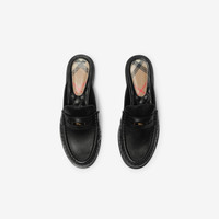 Product Details The Cadet loafers are reworked as supple leather mules, hand-stitched for a gathered effect. Made in Italy, the front is detailed with an enamelled Knight stamp plaque, an archival motif first seen on Burberry bags in the 1980s. The leather sole features our Equestrian Knight Design in signature Knight Blue. - Rounded toe - Quilted leather insole - Equestrian Knight Design at sole - Comes with a dust bag - Item 81185761 Fabric & Care - Upper: 100% lambskin - Lining: 90% leather, 10% calf leather - Sole: 70% calf leather, 30% thermoplastic polyurethane - Made in Italy
