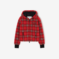 Product Details Regular fit. Fits true to size, take your normal size. A hooded jacket made from a soft wool-cashmere blend fleece, knitted with the Burberry Check in seasonal crayon red – created as part of our Year of the Horse capsule. The style is lined in breathable mesh and is cut to a regular fit with a cropped length. Our Equestrian Knight Design is appliqued at the chest, embroidered with textural and metallic threads. - Two-way zip closure - Drawcord hood and hem - Side zip pockets - Rib-knit trims - Appliqued Equestrian Knight Design at chest - Comes with a garment bag - Item 81185021 Size & Fit - Regular fit. Fits true to size, take your normal size. - Length: 55cm/21.7in (size UK S) - Model’s height: 178cm/5ft 10in. Model wears size UK S Fabric & Care - Outer: 50% wool, 40% polyester, 10% cashmere - Trim: 96% cotton, 4% elastane - Trim reverse: 100% polyamide - Lining: 100% polyester - Hood lining: 100% polyester - Specialist dry clean - Made in Portugal