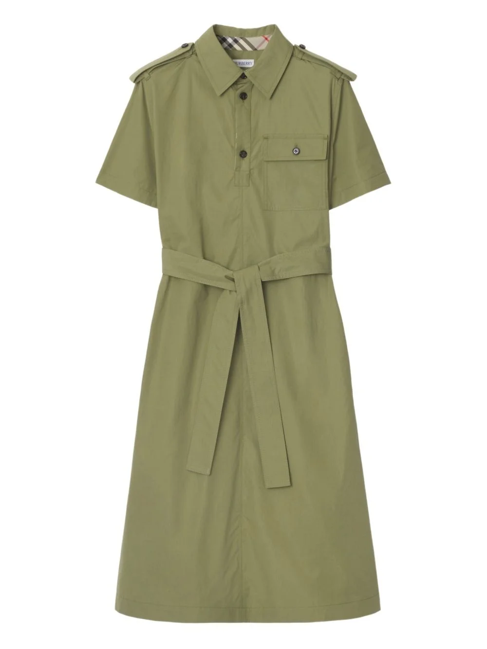 cotton shirt dress Highlights - Moss green - Front button placket - Detachable and adjustable waist belt - Chest flap pocket - Epaulettes Imported Composition Cotton 100%