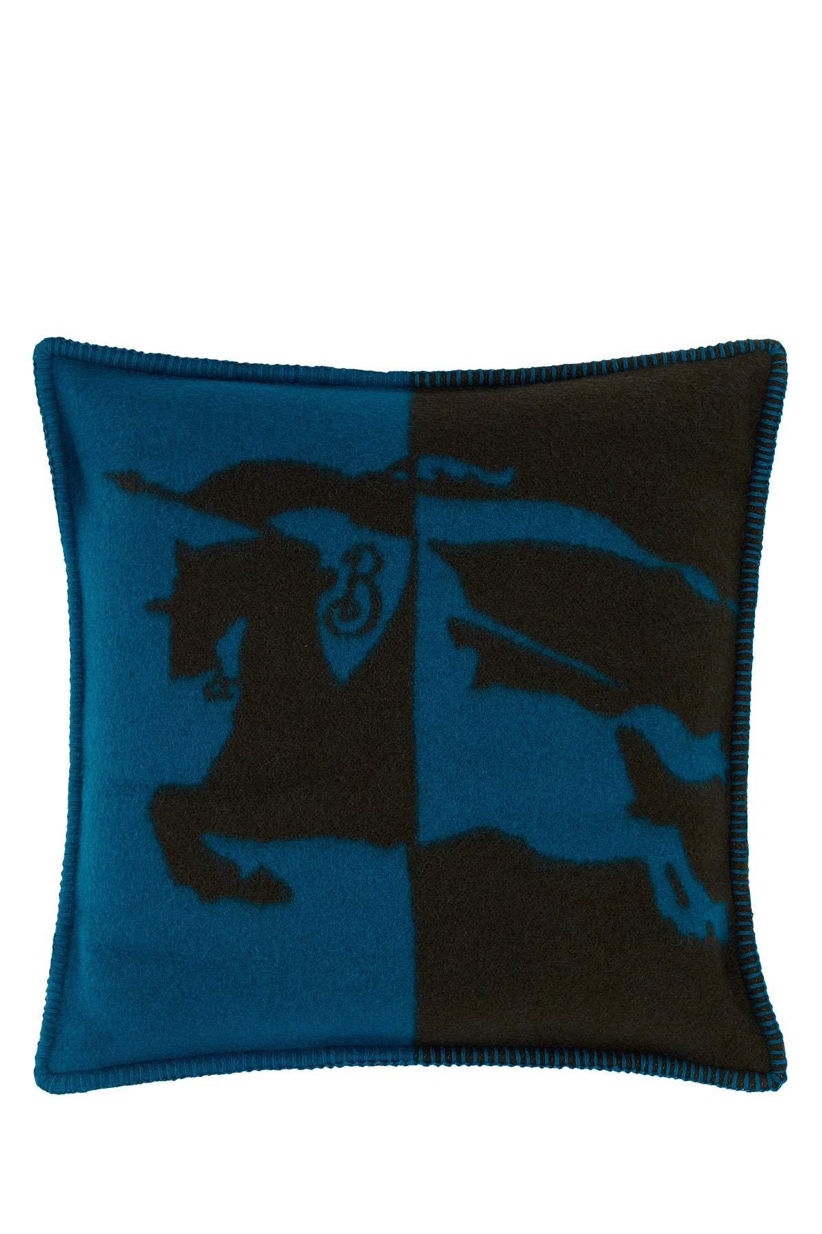 Pillow realized in pure wool characterized by Equestrian Knight at the front. DETAILS Two-tone wool pillow Exterior: 100% Wool Made in italy Width: 52 cm Height: 52 cm