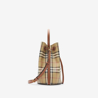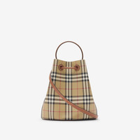 Product Details A bucket bag made in Italy from a coated cotton blend printed with the Burberry Check. The softly structured shape is lined in cotton and features a drawcord closure with a leather shield toggle. Carry by the top handle or wear as a crossbody bag using the adjustable strap. - Top handle - Detachable, adjustable leather strap - Drawcord closure - Interior slip pocket - Hand-painted edges - Polished metal hardware - Cotton lining - Comes with a dust bag - Item 81004901 Size & Fit - 26 x 16 x 26cm/10.2 x 6.3 x 10.2in. Min. strap drop: 47.5cm/18.7in. Max. strap drop: 52.5cm/20.7in Fabric & Care - Outer: 55% polyurethane, 25% polyester, 20% cotton* - Trim: 100% calf leather - Lining: 100% cotton - *The main material of this product is made with at least 30% bio-based materials - Bio-based materials are derived from renewable natural resources such as plants - Made in Italy