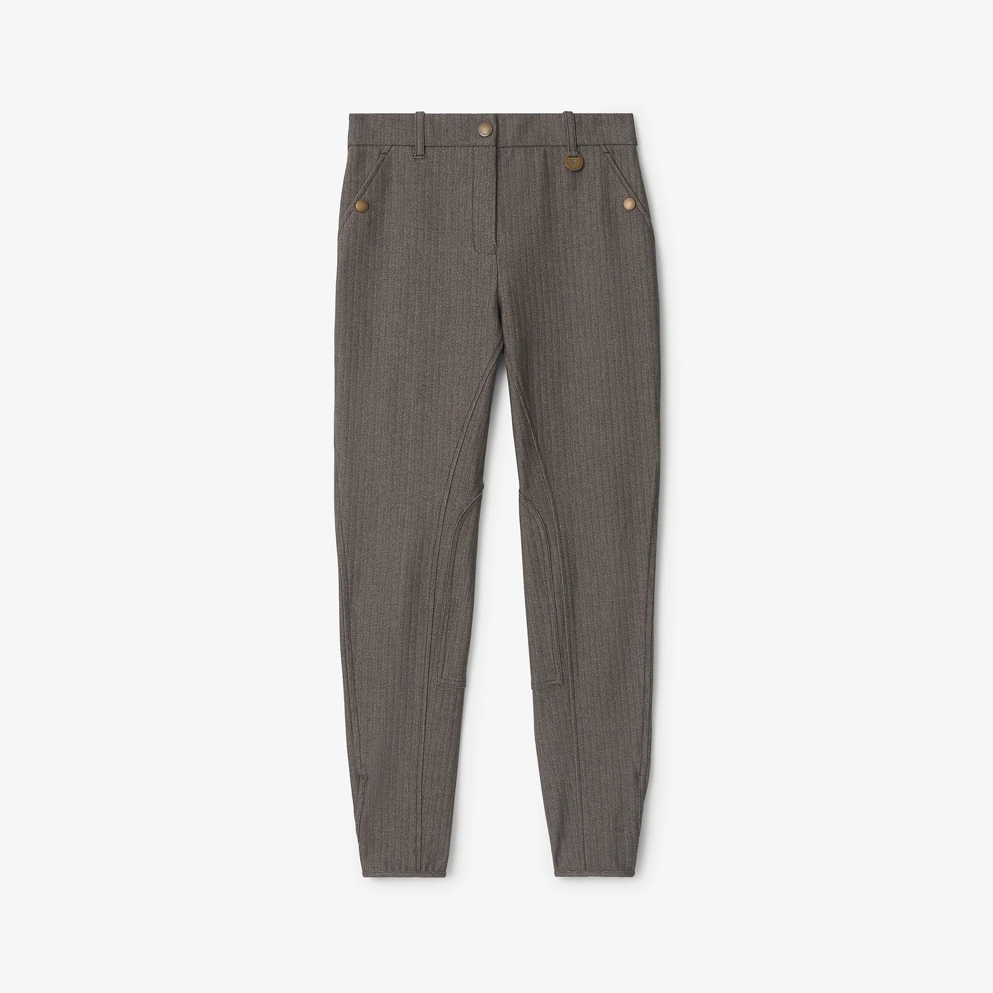 Product Details Inspired by equestrian pursuits, a pair of jodhpurs tailored to a slim fit in stretch cotton with a subtle herringbone pattern. Debuted on the Burberry Winter 2025 runway, the style features press-stud cuffs to adjust the silhouette and an Equestrian Knight Design tag at the belt loop with an antique finish. - Press-stud, hook and zip closure - Elasticated waist - Equestrian Knight Design tag at belt loop - Press-stud cuffs - Slim fit: this style is cut to a fitted silhouette. Fits true to size, take your normal size. - Machine wash - Item 81168061 Size & Fit - Inside leg length: 68cm/26.8in (size UK 8) - Model’s height: 175cm/5ft 9in. Model wears size UK 8 Fabric & Care - 91% cotton, 9% elastane - Trim: 100% cotton - Imported
