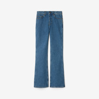 Product Details Jeans made in Italy from stretch denim in a mid-blue wash. The five-pocket bootcut style features diagonal belt loops at the back and a suede patch embossed with the Equestrian Knight Design. - Button closure - Suede patch with embossed Equestrian Knight Design at back - Burberry Check tab at side - Bootcut: cut closer at the hip, with a wider hem. - Machine wash inside out - Item 81107411 Size & Fit - Inside leg length: 83.5cm/32.9in (size UK 26) - Model’s height: 177cm/5ft 10in. Model wears size UK 26 Fabric & Care - 98% cotton, 2% elastane* - Trim: 50% calf leather, 50% lamb suede - *The main material of this product contains at least 70% cotton, all of which is organically grown - Made in Italy