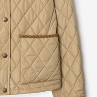 Product Details Slim fit: this style is cut to a fitted silhouette. Fits true to size, take your normal size. A quilted jacket made from lightweight nylon, lined with Burberry Check cotton twill in our signature sand beige colourway. The style is cut to a slim fit with tonal corduroy trims. - Press-stud closure - Side patch pockets - Burberry Check lining and undercollar - Equestrian Knight Design tab at side - Comes with a garment bag - Item 81072851 Size & Fit - Slim fit: this style is cut to a fitted silhouette. Fits true to size, take your normal size. - Length: 63cm/24.8in (size UK S) - Model’s height: 180cm/5ft 11in. Model wears size UK S Fabric & Care - Outer: 100% polyamide* - Trim: 100% cotton - Lining: 100% cotton - Filling: 100% polyester fibres - *The main material of this product is made with at least 50% recycled content - Specialist dry clean - Imported