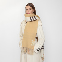 Product Details A cashmere scarf made at a Scottish mill founded in 1797. The reversible style switches from the Burberry Check to a solid colour and is jacquard-woven with our Equestrian Knight Design. The fabric is washed in local spring water and brushed with teasels – dried flowers that are drawn along the surface of the cashmere to ‘raise’ the cloth, creating a natural lustre and ultra-soft finish. - Rectangular - Fringing at both ends - Item 81139301 Size & Fit - 210 x 50cm/82.7 x 19.7in Fabric & Care - 100% cashmere - Specialist dry clean - Made in Scotland