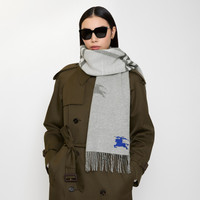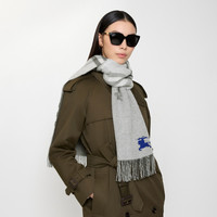 Product Details A scarf in double-faced cashmere, made at a Scottish mill founded in 1797. The reversible style switches from the Burberry Check to a solid colour woven and embroidered with our Equestrian Knight Design. The fabric is washed in local spring water and brushed with teasels – dried flowers that are drawn along the surface of the cashmere to ‘raise’ the cloth, creating a natural lustre and ultra-soft finish. - Rectangular - Fringing at both ends - Item 81176891 Size & Fit - 168 x 30cm/66.1 x 11.8in Fabric & Care - 100% cashmere - Specialist dry clean - Made in Scotland