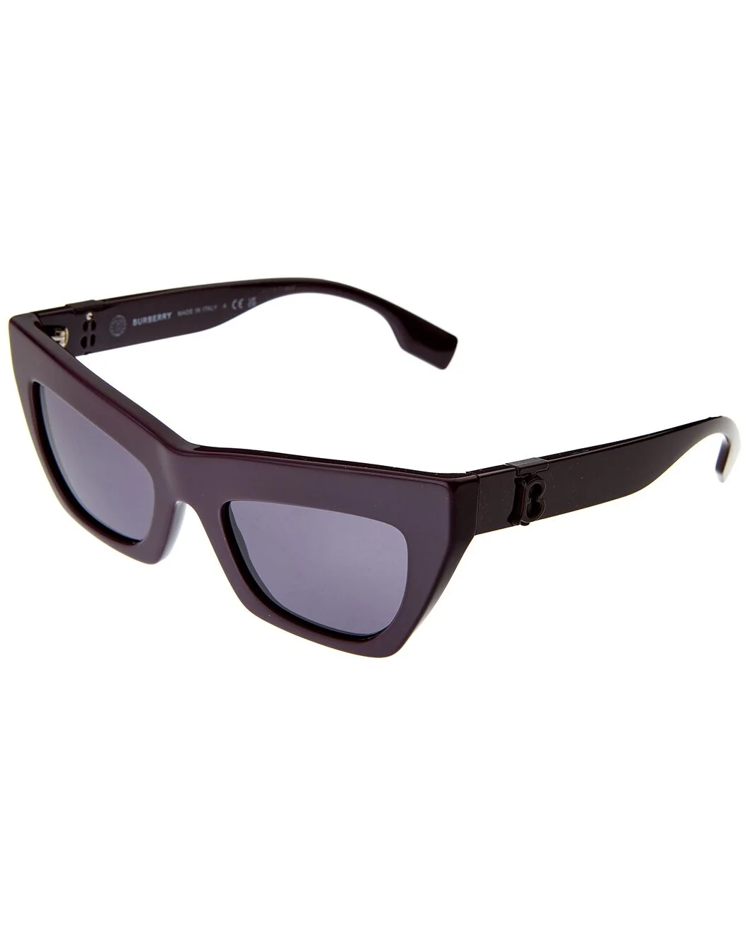 - About the brand: Iconic patterns, materials and silhouettes have made Burberry a coveted luxury staple since 1856. From waterproof, patented gabardine fabric to the unmistakable vintage check and the more modern monogram pattern, Burberry boasts undeniably British influence with timeless appeal. - Frame shape: cat eye - Frame color: violet - Lens color: violet - These frames flatter those with an oval, round, diamond, triangle or oblong shaped face - Plastic lenses with 100% UV protection - Lens: 51mm wide - Bridge: 21mm wide - Arms: 140mm long - Made in Italy - Model #: BE4405-34001A-51 - The Eyewear Size Guide - Our products are 100% genuine. In some cases we purchase merchandise from trusted independent suppliers and not directly from the brand owner. In all cases we stand by the authenticity of every product sold on our site.