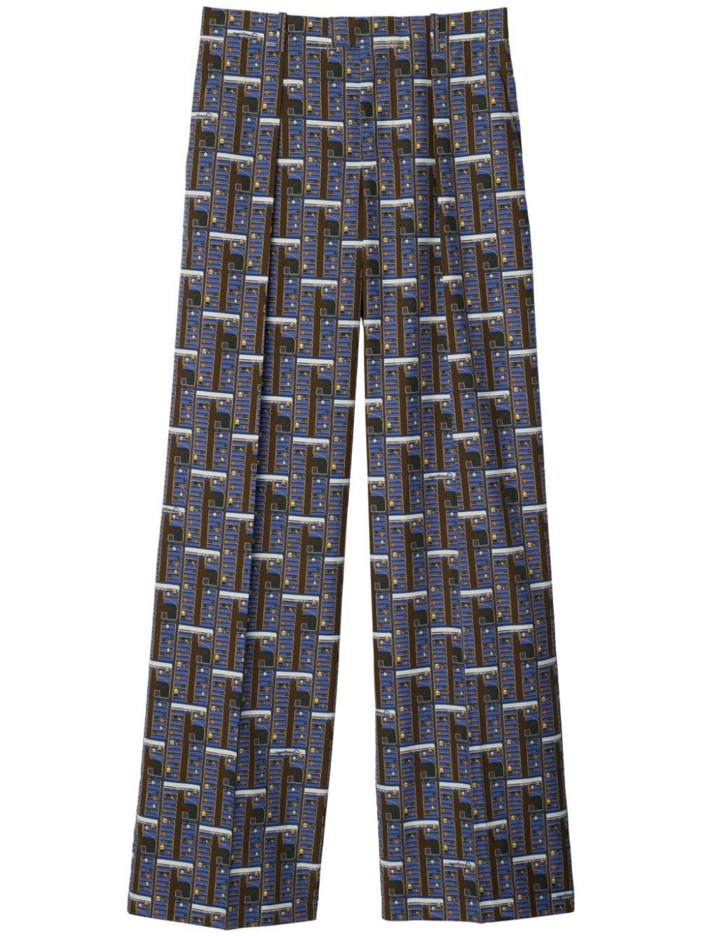 Bus silk straight-leg trousers Highlights - Navy blue - Silk - All-over graphic print - Belt loops - Concealed front fastening - Pleat detailing - Straight leg Made in Italy Composition Silk 100%, Mother of Pearl 100%