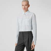 PRODUCT DETAILS An oversized shirt cut from Italian-woven silk crepe de chine, animated in a watercolour-effect chain print. The style is finished with a neat button-down collar. - Shirt length: 77cm/30.3in. This is based on a size UK 6 as proportions change slightly according to size. - Model’s height: 180cm/5ft 11in. Model wears size UK 6. Oversized fit 100% silk Buttons: mother-of-pearl Single-button cuffs Button-down collar Chest patch pockets Curved hem Specialist dry clean Imported Item 80650951