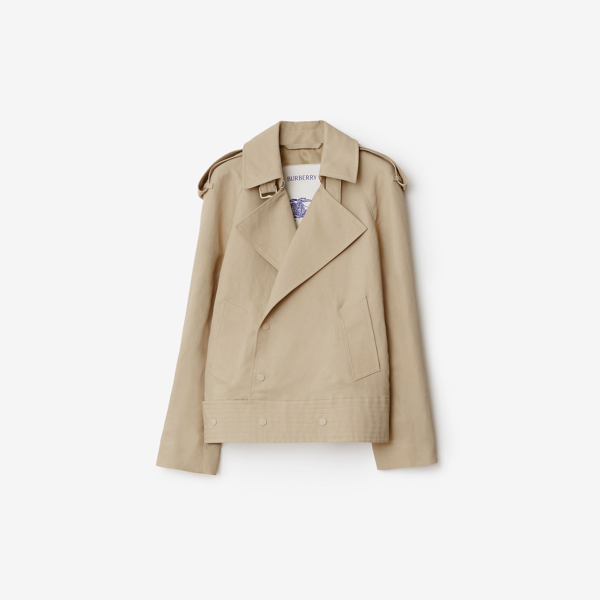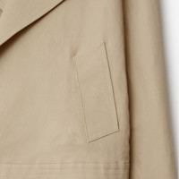 PRODUCT DETAILS A jacket made from lightweight canvas twill. The silhouette is inspired by our signature trench and is cut to a slim fit with raglan sleeves. - Length: 62cm/24.4in (size UK 6) - Model’s height: 178cm/5ft 10in. Model wears size UK 6 Slim fit: this style is cut to a fitted silhouette. Fits true to size, take your normal size. Outer: 68% paper fibre, 32% viscose Lining: 100% viscose Specialist dry clean Imported Item 80873491