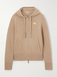 Burberry's hoodie is made from naturally insulating cashmere and wool-blend. It has ribbed trims and the brand's 'Knight' logo embroidered at the chest. The neutral shade is endlessly versatile. Size & Fit - Fits true to size, take your normal size - Designed for a relaxed fit - Mid-weight knit - Model is 177cm/ 5'10" and is wearing a size Small Model measurements: - Bust: 86cm/ 34" - Waist: 65cm/ 25.5" - Hip: 90cm/ 35.5" Details & Care - Sand cashmere and wool-blend - Two-way zip fastening through front - 71% cashmere, 29% wool - Hand wash