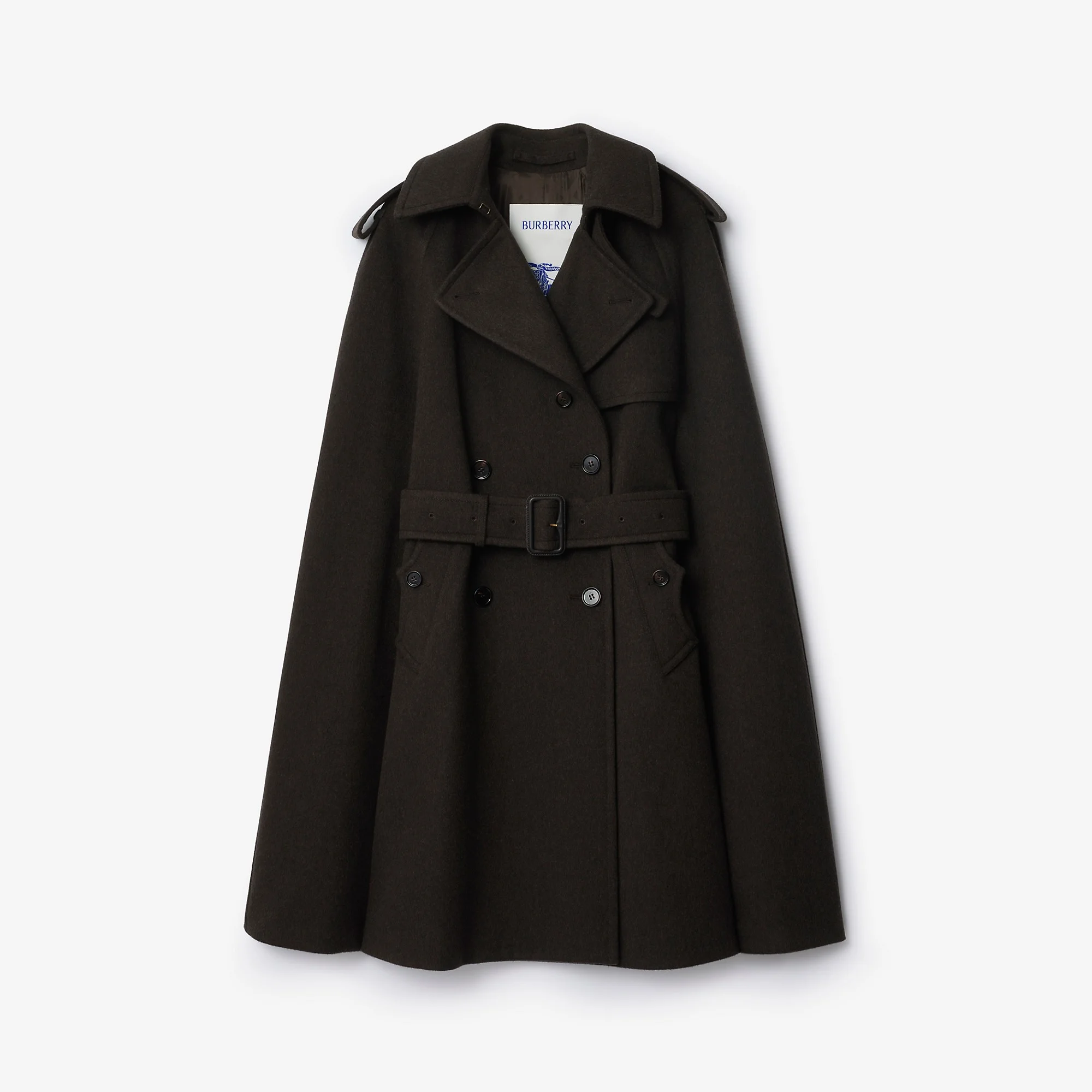 Product Details Elements from our iconic trench are reconstructed in the Belmont cape, made in Italy from soft brushed cashmere. The silhouette features epaulettes, a gun flap and B buckle belt, whilst an archival coat inspires the curlicue shape of the pockets. Cut to a regular fit with a tonal check lining. - Double-breasted button closure - Hook collar closure - Throat latch - Epaulettes - B buckle belt - Side button welt pockets - Burberry Check inner - Comes with a garment bag - Regular fit. Fits true to size, take your normal size. - Item 81150481 Size & Fit - Length: 98.5cm/38.8in (size UK XS/S) - Model’s height: 180cm/5ft 11in. Model wears size UK XS/S Fabric & Care - Outer: 100% cashmere - Lining: 100% cupro - Pocket lining: 100% cotton - Buckle: 100% calf leather - Buttons: buffalo horn - Specialist dry clean - Imported