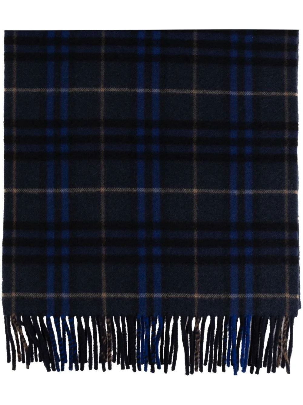 cashmere scarf Highlights - Blue - Cashmere - Check print - Fringe detailing Made in United Kingdom Composition Cashmere 100% SIZE & FIT Measurement LENGTH 78.74 in(200 cm) WIDTH 14.17 in(36 cm)