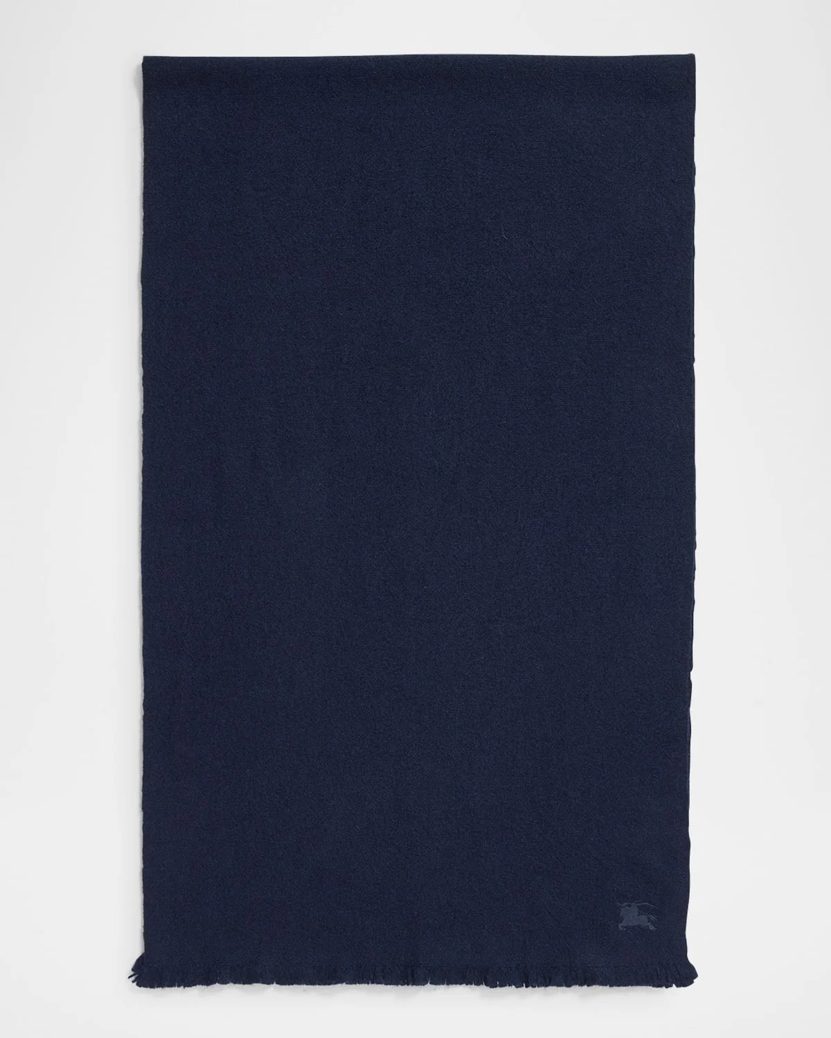 Burberry handwoven scarf subtly embroidered with a tonal Equestrian Knight Design Approx. 70.9"L x 20.9"W Eyelash fringing on both ends May be styled multiple ways Cashmere/silk Dry clean Made in Italy