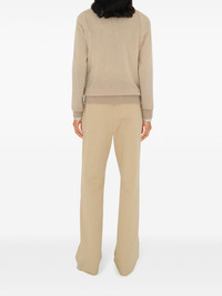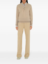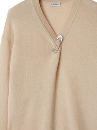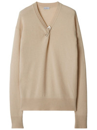 cashmere sweater Highlights - Beige - Cashmere - Knitted construction - Bar-pin fastening - Ribbed v-neck - Twist detailing - Drop shoulder - Long sleeves - Ribbed cuffs and hem Made in United Kingdom Composition Cashmere 100%