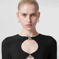 PRODUCT DETAILS A long-sleeved dress sculpted from form-fitting stretch jersey, featuring cut-out details framed with polished metal chain links. - Dress length: 136cm/53.5in. This is based on a size UK 6 as proportions change slightly according to size. - Model’s height: 181cm/6ft 0in. Model wears size UK 6. Outer: 62% polyamide, 38% elastane Trim: 80% aluminium, 17% copper, 3% zinc alloy Lining: 80% polyamide, 20% elastane Concealed back press-stud closure Specialist dry clean with any solvent except perchloroethylene Made in Italy Item 80626551