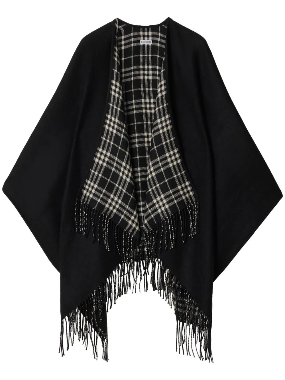 checked wool cape Highlights - Black/white - Wool - Check pattern - Reversible - Fringed edge - Cape design - Drop armholes - When buying this unisex item, keep in mind that it is graded in standard men's sizing. Made in United Kingdom Composition Wool 100% SIZE & FIT Measurement LENGTH 51.18 in(130 cm)
