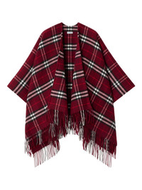 checked fringed cape Highlights - Dark red - Check pattern - Fringed edges - Double-faced - Cape design Made in United Kingdom Composition Wool 90%, Cashmere 10% Washing instructions Read Manufacturer Guidelines