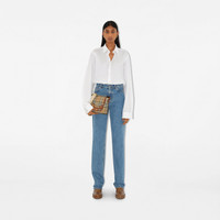 PRODUCT DETAILS An archive-inspired crossbody bag made in Italy from calf leather and Burberry Check with a cotton lining. Carry across the body or wear on the shoulder using the detachable strap. - 25 x 8.5 x 18cm/9.8 x 3.3 x 7.1in - Min. strap drop: 38cm/15in - Max. strap drop: 59cm/23.2in Outer: 55% polyurethane, 25% polyester, 20% cotton* Trim: 100% calf leather Lining: 100% cotton Made in Italy *The main material of this product is made with at least 30% bio-based materials. Bio-based materials are derived from renewable natural resources such as plants. Item 80920671