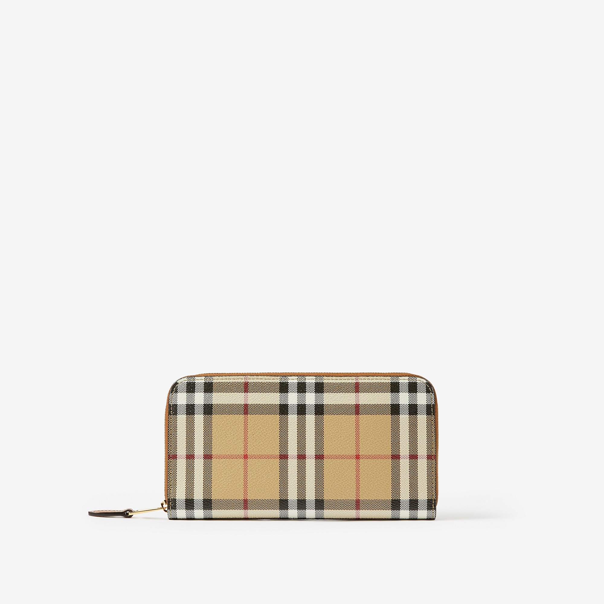 Product Details A zip wallet in Burberry Check, lined with smooth calf leather. - Zip closure - 12 card slots - Zip compartment - Two expandable note compartments - Two slip pockets - Hand-painted edges - Brushed metal hardware - Item 80705981 Size & Fit - 19 x 10.5cm/7.5 x 4.1in Fabric & Care - Outer: 71% polyurethane, 16% polyester, 12% cotton, 1% acrylic* - Trim: 100% calf leather - Inner: 100% calf leather - Lining: 100% polyamide - *The main material of this product is made with at least 30% bio-based materials - Bio-based materials are derived from renewable natural resources such as plants - Imported