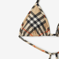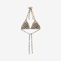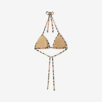 Product Details A halterneck bikini top in stretch nylon, printed with the Burberry Check in signature sand beige. Comes with a matching drawstring bag. - Removable padded cups - Machine wash - Item 81225121 Size & Fit - Model’s height: 177cm/5ft 10in. Model wears size UK S Fabric & Care - Outer: 73% polyamide, 27% elastane - Trim: 73% polyamide, 27% elastane - Lining: 59% polyamide, 41% elastane - Bag: 73% polyamide, 27% elastane - Made in Portugal