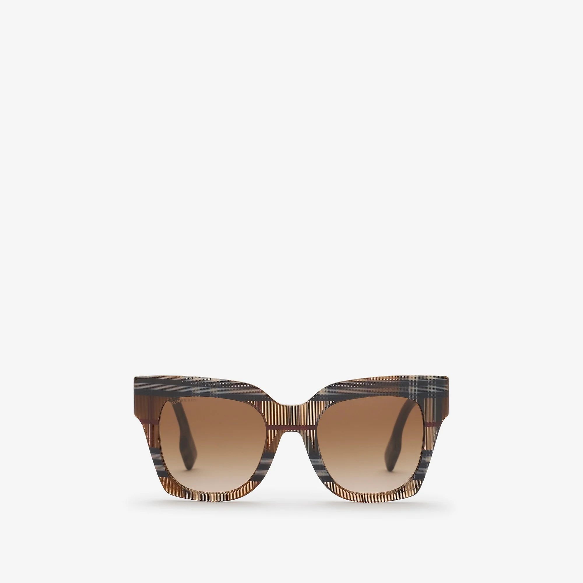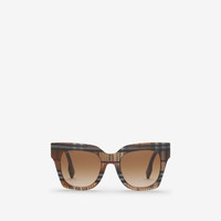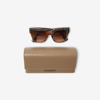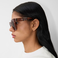 Product Details A pair of square-frame sunglasses in acetate. The exaggerated shape is patterned with the Burberry Check. - Scratch-resistant gradient dark brown lenses with 100% UV protection - Also available in an alternative fit - Item 40823201 Size & Fit - Frame width: 14.3cm/5.6in. Frame height: 5.7cm/2.2in Fabric & Care - Frame: 100% acetate* - *The acetate in the frames is made with at least 50% bio-based content obtained from renewable resources such as beet or sugar cane - Comes with a hard leather case and cleaning cloth - Made in Italy