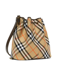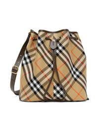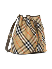 Beige Jacquard Check Drawstring Bucket Bag